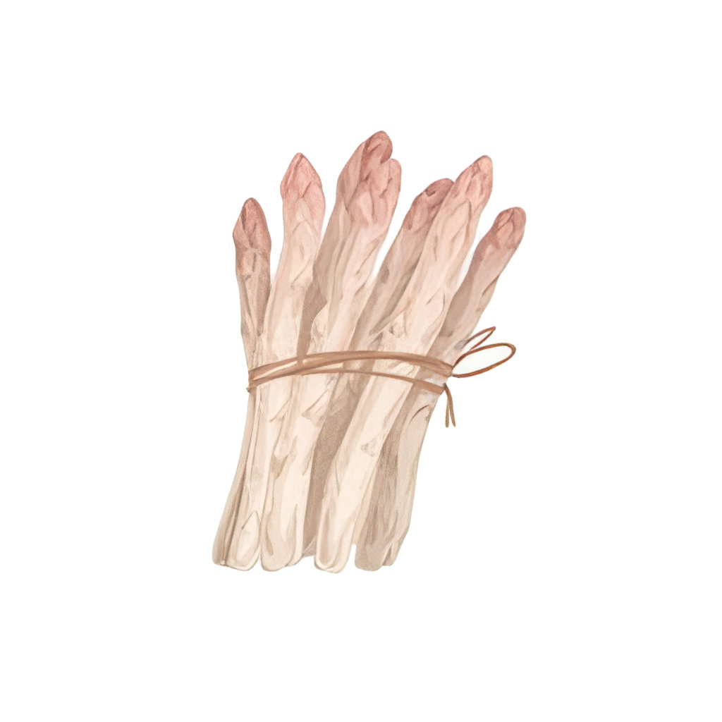 Asperge blanche : Tendreté et douceur en bouche. Saveurs subtiles légèrement amères, cultivée sous terre.